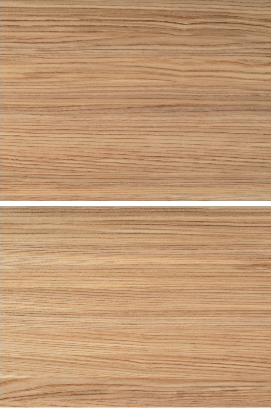 Our Abundance series standing desk's top is made of 100% solid wood planks (4-6 pieces for South American walnut, and 11-14 pieces for Ash), all edges are flat and smooth. The wood is finished with thick hard matte coating for longevity and easier maintenance.